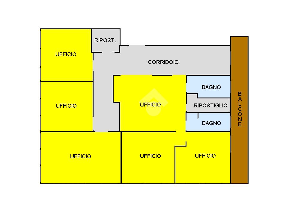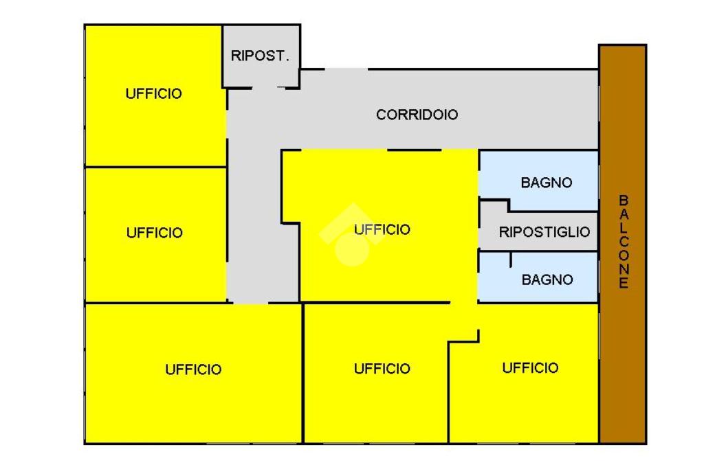 L'ufficio è composto da 6 locali con annesi servizi igienici e ripostiglio.